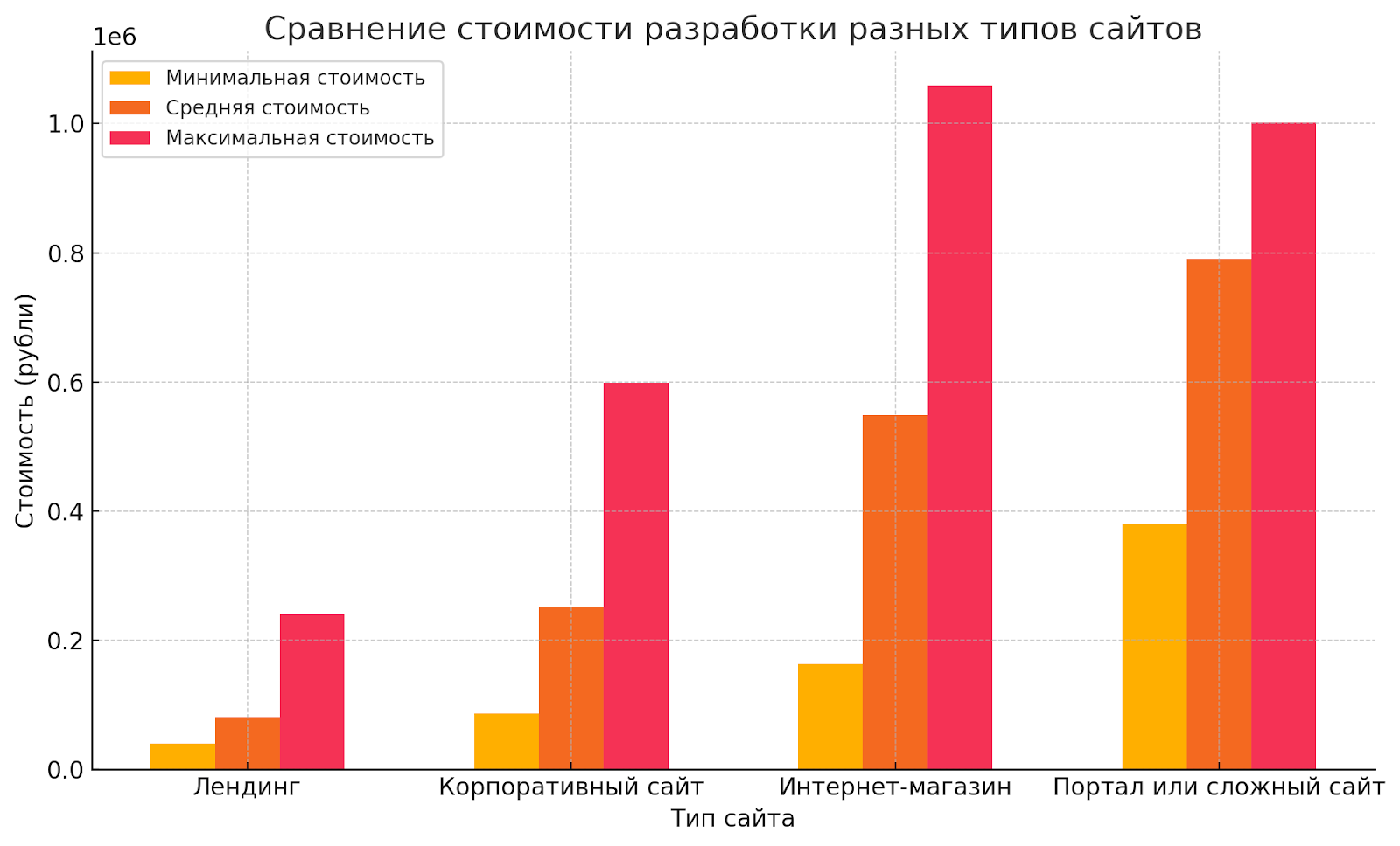 • Высокий уровень сложности (индивидуальный дизайн, интеграции с CRM или ERP): ₽350 000 – ₽599 000.